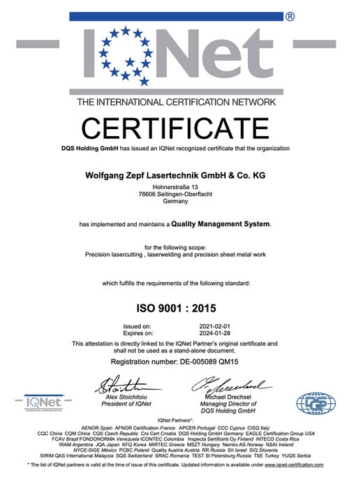 DIN ISO 9001 ZERTIFIZIERT SEIT 1993